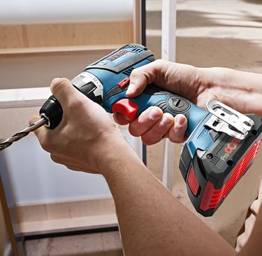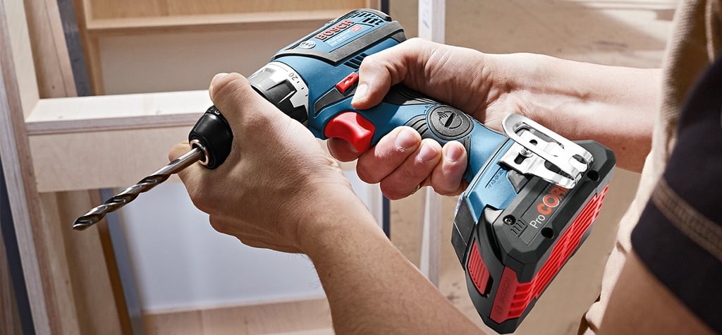 ostrożne wiercenie otworów technicznych z użyciem wiertła do płyt meblowych i osłony krawędzi,