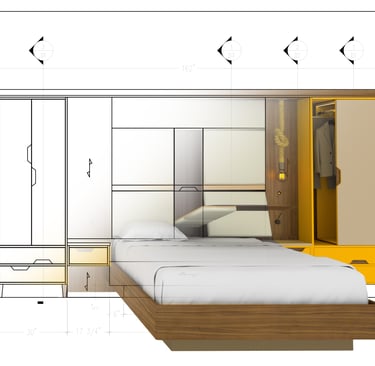 meblościanki z ukrytym łóżkiem typu Murphy bed,