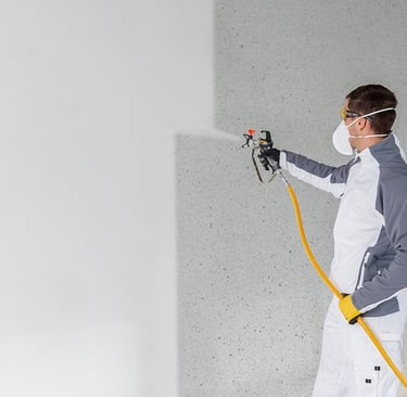 Maszynowa aplikacja wymaga jednak wprawy i odpowiedniego przygotowania zaplecza (np. zabezpieczenia okien, listew i podłóg przed rozpyleniem).