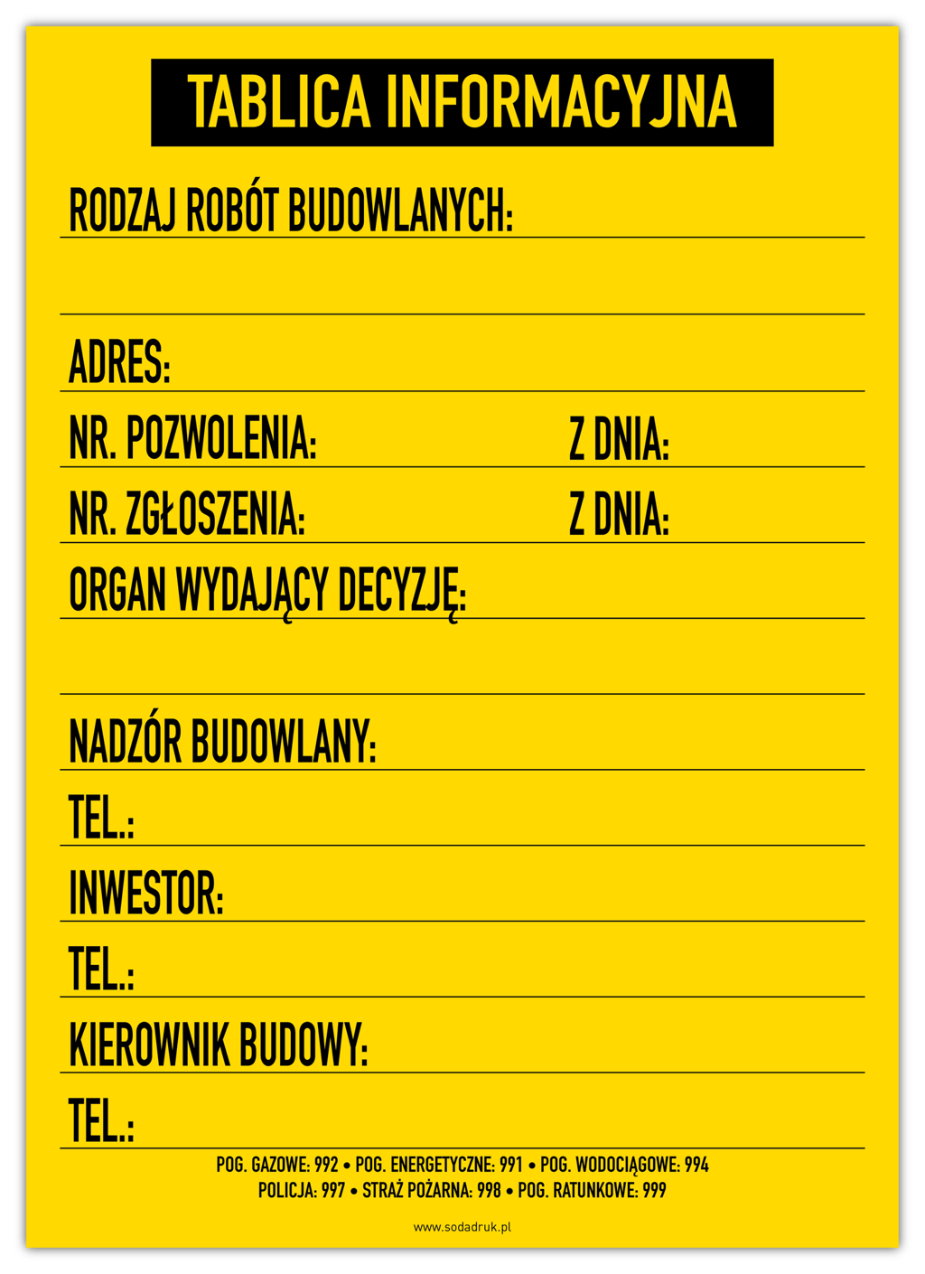 To oficjalny druk, który można pobrać ze strony internetowej właściwego starostwa, urzędu miasta lub z portalu ePUAP. Należy w nim podać:dane inwestora (osoby fizycznej lub firmy),