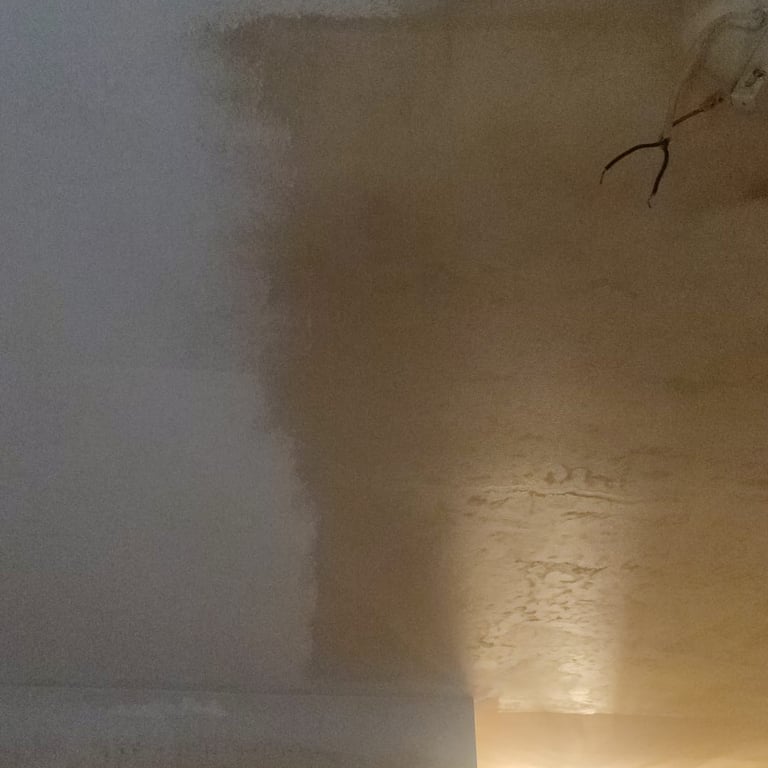 Ciemniejsze plamy w narożnikach lub w górnych partiach ścian/sufitów – to często efekt złej wentylacji, wilgoci zbierającej się w kątach lub braku gruntu w miejscach trudno dostępnych. Może też świadczyć o zawilgoceniu ścian konstrukcyjnych.