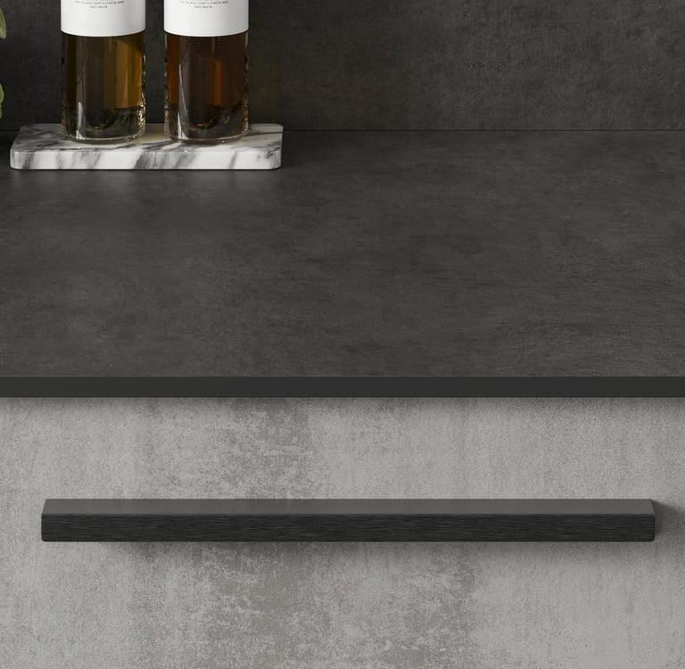 HPL jest jednym z najczęściej stosowanych materiałów na blaty robocze. W wersji klasycznej (klejony na płycie wiórowej) lub jako blat kompaktowy HPL slim (grubość 10–12 mm), oferuje dużą odporność i nowoczesny wygląd.