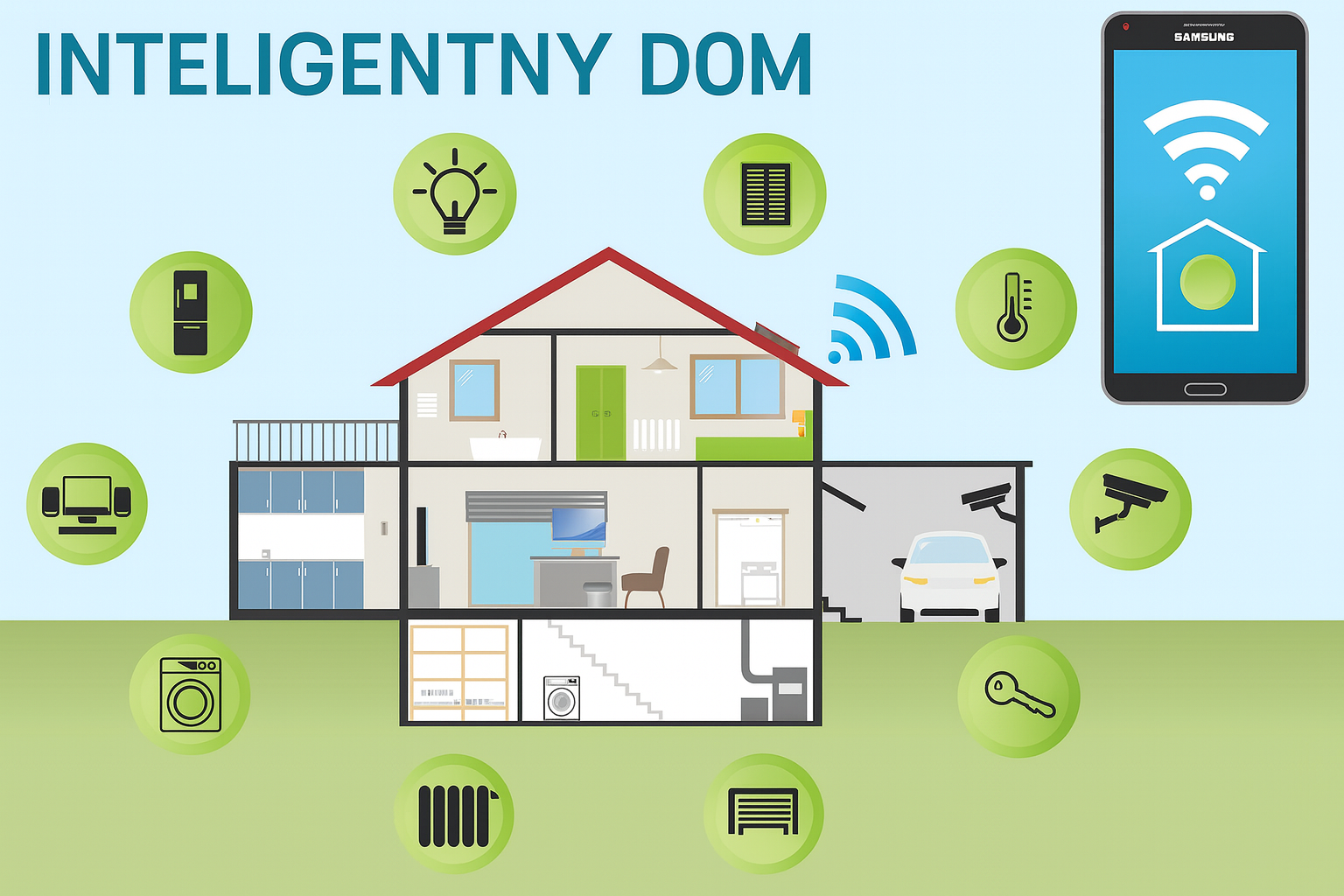 Czujniki temperatury – mogą automatycznie sterować oświetleniem (np. barwą światła w zależności od temperatury otoczenia) lub być zintegrowane z klimatyzacją i ogrzewaniem.