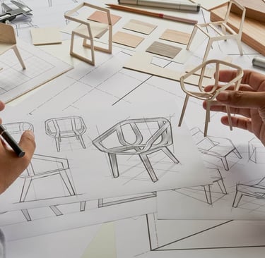 Jednym z najbardziej efektownych przykładów wykorzystania druku 3D w meblarstwie są siedziska: krzesła, hokery, pufy czy ławy. Druk 3D umożliwia projektowanie ergonomicznych, organicznych kształtów, które trudno (lub wręcz niemożliwe) uzyskać przy pomocy klasycznych technologii. Ażurowe nogi, puste przestrzenie w strukturze, geometryczne wycięcia czy asymetryczne linie nadają meblom nowoczesny wygląd i lekkość, jednocześnie zapewniając odpowiednią wytrzymałość dzięki zastosowaniu struktur kratowych (np. siatek heksagonalnych czy struktur typu gyroid).