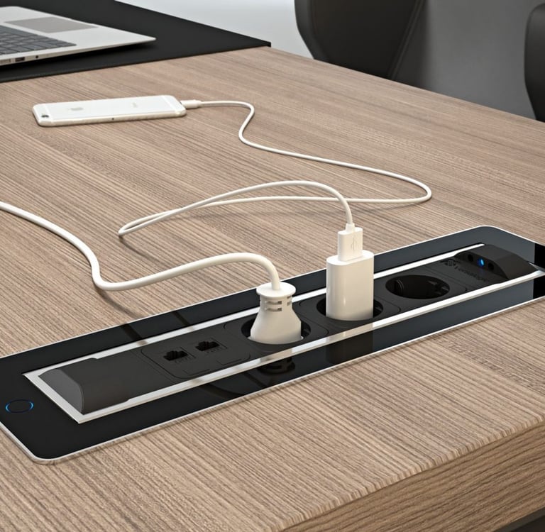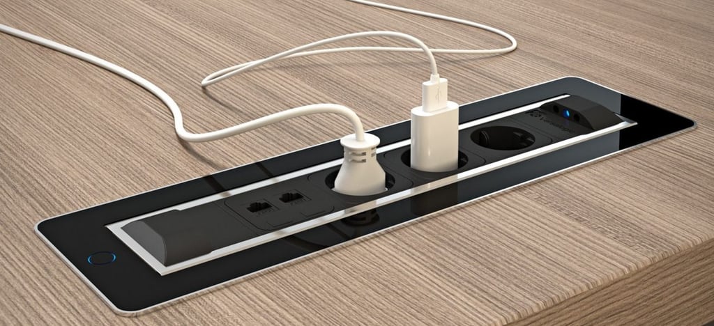 Listwy zasilające z USB: montowane pod blatem lub w jego obrębie. Pozwalają ładować urządzenia mobilne bez użycia adapterów.