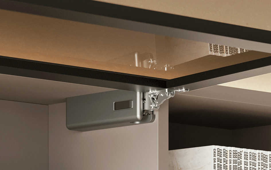 Systemy magnetyczne to najnowszy trend w projektowaniu mebli minimalistycznych, zwłaszcza bezuchwytowych. Zamiast oporu mechanicznego, wykorzystują one oddziaływanie pola magnetycznego, które spowalnia ruch zamykającego się frontu – często w połączeniu z systemem push-to-open.