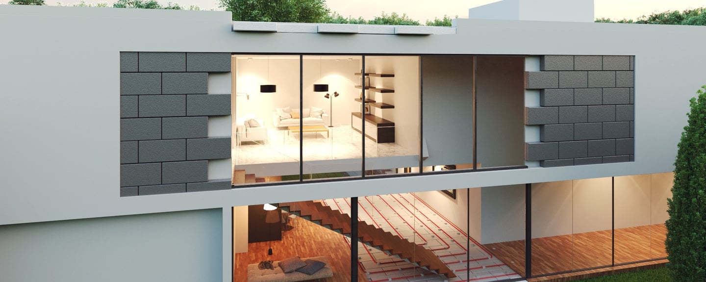 Pompa ciepła powietrze–woda lub gruntowa – idealne źródło ciepła w połączeniu z ogrzewaniem podłogowym o niskiej temperaturze zasilania.