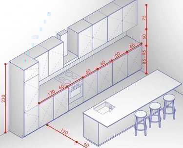 Meble dopasowujemy nie tylko do stylu wnętrza, ale też do sposobu użytkowania: wysokości blatów, ergonomii stref roboczych, układu dla prawo- i leworęcznych oraz do potrzeb osób o ograniczonej mobilności. Chodzi o to, żeby meble były wygodne w codziennym użyciu — nie tylko „ładne na zdjęciu”.