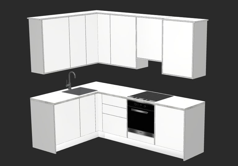 Dostarczamy komplet: instrukcje, elementy (formatki) gotowe do złożenia z przygotowanymi otworami, okucia, zawiasy, prowadnice oraz — jeśli projekt tego wymaga — oświetlenie i elementy sterowania. Jednym słowem: wszystko, co potrzebne, żeby domknąć realizację bez biegania po brakujące drobiazgi.